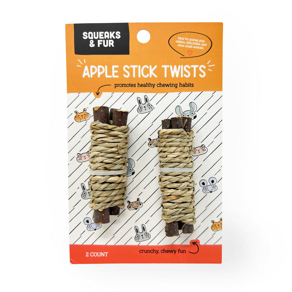 These Apple Stick Twists by Squeaks & Fur are sure to have your critter-companions chomping away! Two times the entertainment - natural apple sticks bundled with woven grass - this duo is sure to be a crowd-pleaser for one or many furry friends!