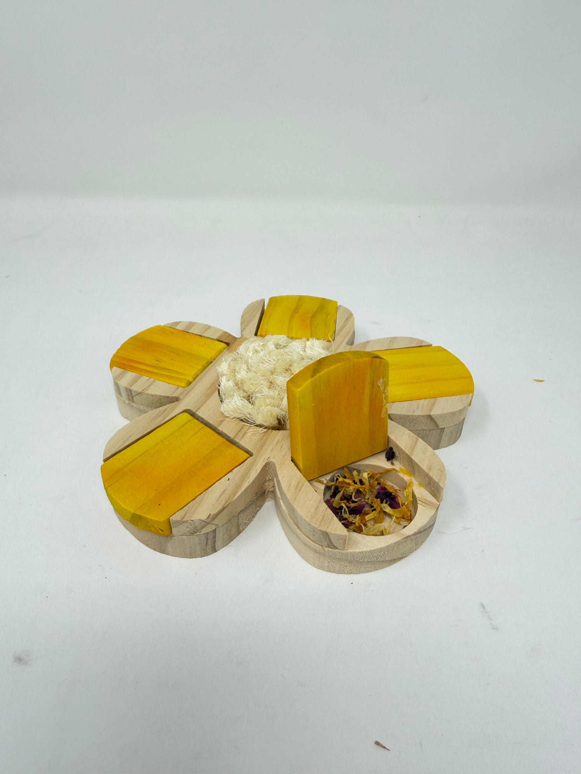Get ready for a foraging fun time with the Squeaks & Fur Daisy Puzzler! Small animals need some brain-boosting fun too. Treat your furry friends to a playful enrichment toy that lets them search for their favorite treats, like flower petals, veggies and pellets. Watch as they open the wooden petals and remove the tasty rewards inside!